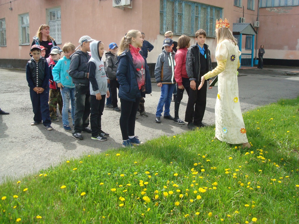 Была проведена праздничная программа «Здравствуй, лето красное!» В гости к ребятам приходило яркое, долгожданное Лето. Оно играло с детьми, устраивало командные соревнования, задавало каверзные вопросы. В ходе соревнований команды проявили себя дружными и сплоченными, а каждый ребёнок получил возможность поближе познакомиться с новыми друзьями. В завершении программы прошел конкурс рисунков на асфальте «Мы маленькие дети!», посвященный миру и дружбе на земле. Весь день ребята весело общались друг с другом, играли в различные игры. В заключении праздника ребята отразили свое настроение в «Калейдоскопе настроений». Первый день в лагере прошел в дружеской и непринужденной обстановке, наполненный яркими красками и впечатлениями.